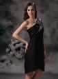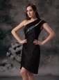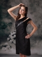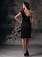 Home >  Special Occasion Dresses >  Little Black Dresses > Brand New Black Column / Sheath Asymmetrical Little Black Dress Satin Beading Knee-length