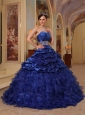 Brand New Blue Quinceanera Dress Sweetheart Organza and Taffeta Beading Ball Gown