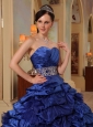 Home >  Quinceanera Dresses >  Popular Quinceanera Dresses > Brand New Blue Quinceanera Dress Sweetheart Organza and Taffeta Beading Ball Gown