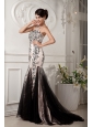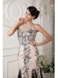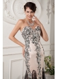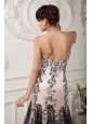 Brand New Champagne Column Evening Dress Sweetheart Tulle and Satin Appliques With Beading