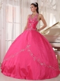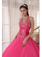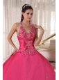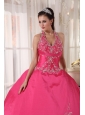 Brand New Coral Red Quinceanera Dress Halter Taffeta Appliques Ball Gown