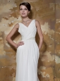 You will fall head over heels in love with the pleated details and feminine beauty showcased in this V-neck empire wedding dress. Crossed ruching on the fitted bodice fills the bustline which then drapes from the empire waistline into the flowing skirt. And a row of stunning beadings around the waist sparkles the dress perfectly.Made of luxurious, flowing Chiffon fabric, this gown has a simple sheath silhouette with casual but splendid pleats which creates a marvelous and flattering train tails.