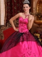 This fushcia quinceanera dress will make you the spylight in any occasion you attend.The sweetheart neckline bodice accented by the exquisite embroidery and the boning details flatters most figures. While the skirt in a constrasting color is adorned by the floral embellishment all throughout. A corset back completes this fabulous design..