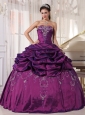 How could you not adore this striking purple strapless ball gown? This dress features a special neckline and straps. Contrasting piping accentuates the bodices princess seams and bolsters the dramatic effect of the skirts tiered layers. while an intricate lace-up detail in the back brings the look full circle.