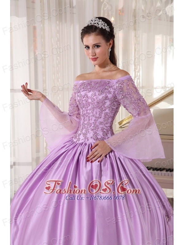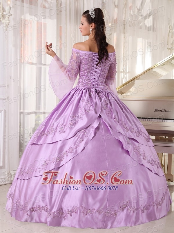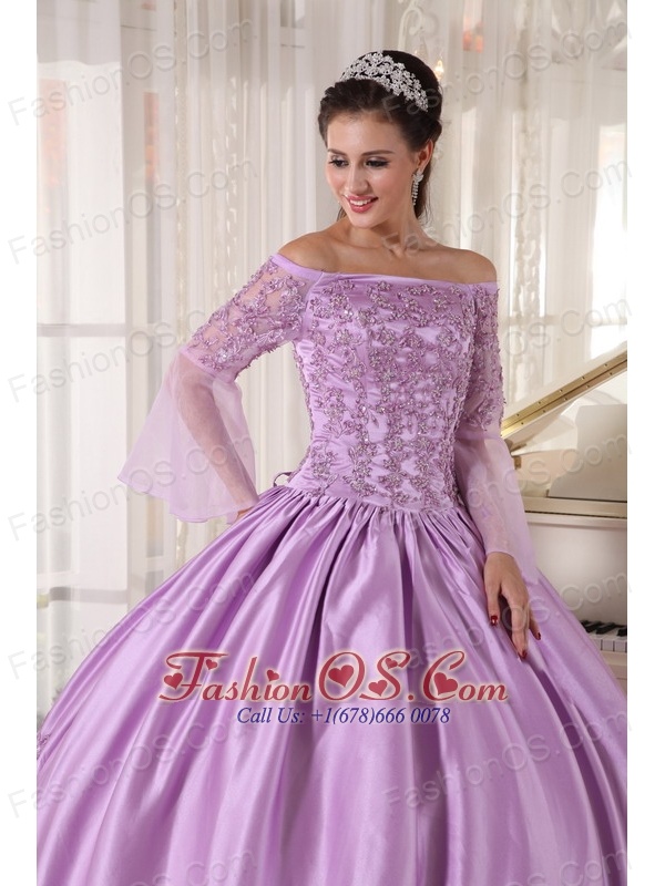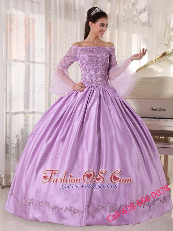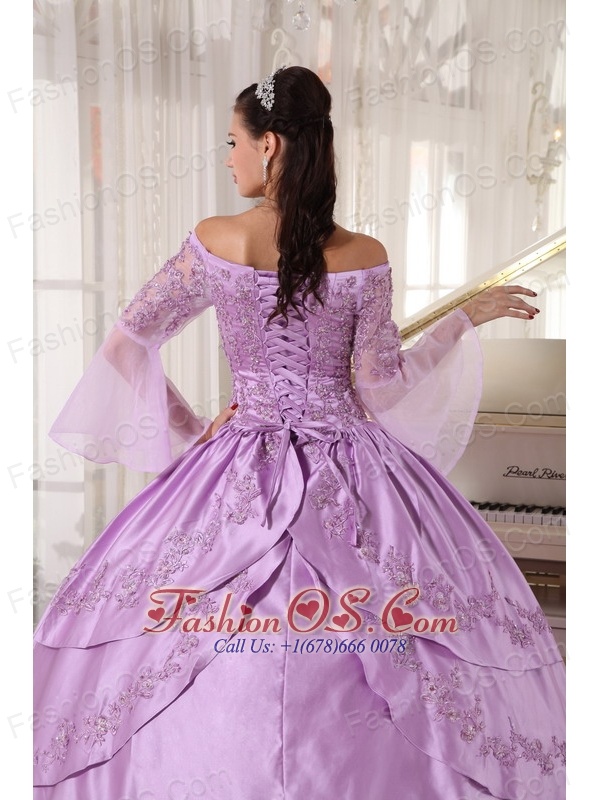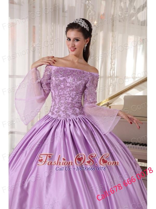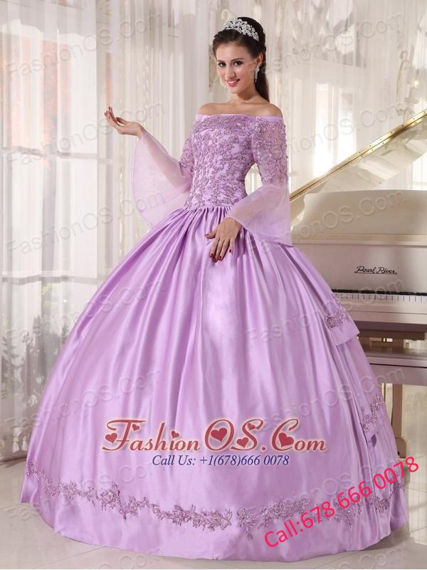 Brand New Lavender Quinceanera Dress Off The Shoulder Taffeta and Organza Appliques Ball Gown