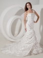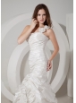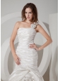 Brand New Mermaid Wedding Dress One Shoulder Hand Made Flowers and Ruch Court Train