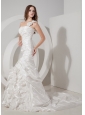 Brand New Mermaid Wedding Dress One Shoulder  Hand Made Flowers and Ruch Court Train