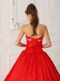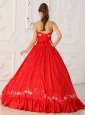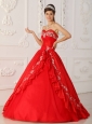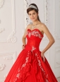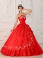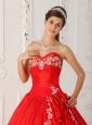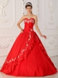 This pretty red quinceanera will surely turn head. It has a popular sweetheart neckline, elaborate embroidery adorns on the bust.The A-line skirt is beautifully shaped by the appliqued flouncing. You will be the belle of the party.