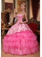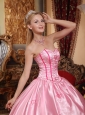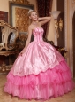 Brand New Rose Pink Quinceanera Dress Sweetheart Taffeta and Oragnza Embroidery Ball Gown