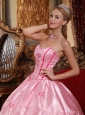 Home >  Quinceanera Dresses >  Perfect Quinceanera Dresses > Brand New Rose Pink Quinceanera Dress Sweetheart Taffeta and Oragnza Embroidery Ball Gown