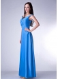 Home >  Bridesmaid Dresses >  Elegant Bridesmaid Dresses > Brand New Sky Blue Cloumn V-neck Bridesmaid Dress Taffeta Ruch Ankle-length