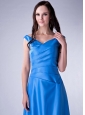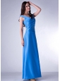 Brand New Sky Blue Cloumn V-neck Bridesmaid Dress Taffeta Ruch Ankle-length