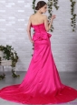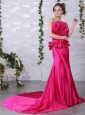 Brand New Strapless 2015 Plus Size Prom Dress with Bowknot and Chapel Train