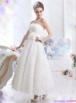 Brand New Strapless Ankle Length Lace Wedding Dress with Hand Made Flowers