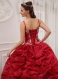 An elegant and graceful quinceanera gown for any who want to be bright at the party. It features a strap bodice with a sweetheart neckline, pleated waistline and appliques decorated bustline and hemline. The ruched waistline and the lace up back create a flattering silhouette.The gown owns two tiers, the out layer is tulle with heavy and asymmetrical pick-ups, the inner layer is taffeta as the innerskirt. Such an amazing dress with an amzing price, It will be a good choice for you.