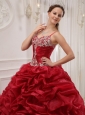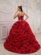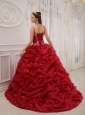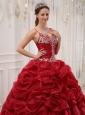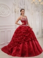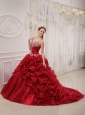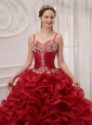Home >  Quinceanera Dresses >  Pretty Quinceanera Dresses > Brand New Wine Red Quinceanera Dress Spaghetti Straps Court Train Organza Beading Ball Gown