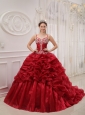 Brand New Wine Red Quinceanera Dress Spaghetti Straps Court Train Organza Beading Ball Gown
