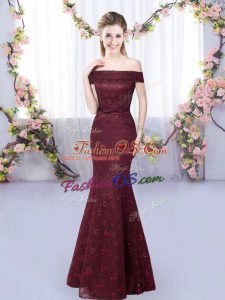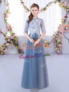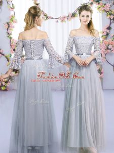 Half Sleeves Lace Up Floor Length Lace Bridesmaid Dresses
