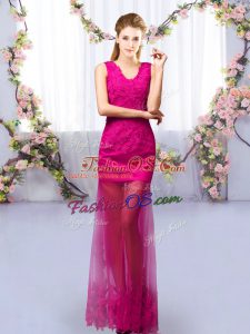 Deluxe Sleeveless Floor Length Bridesmaids Dress and Lace