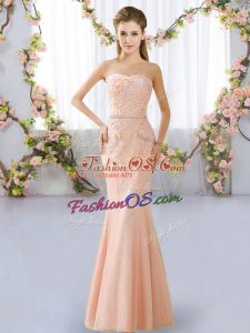 Dynamic Peach Lace Up Sweetheart Beading Bridesmaid Gown Lace Sleeveless