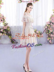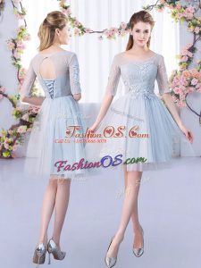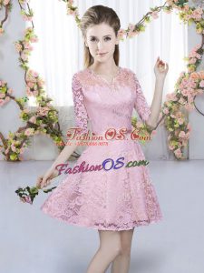 Glorious Mini Length Pink Bridesmaid Dress Scoop Half Sleeves Lace Up