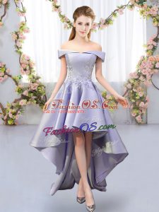High Low A-line Sleeveless Lavender Bridesmaid Dress Lace Up