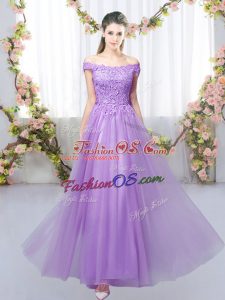 Trendy Lavender Sleeveless Floor Length Lace Lace Up Bridesmaid Dresses