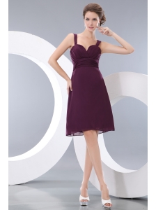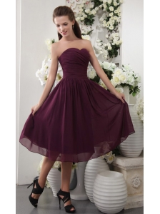 Dark Purple Empire Sweetheart Tea-length Chiffon Pleat Bridesmaid Dress