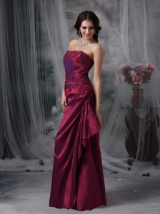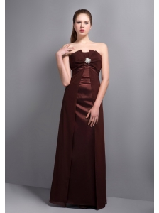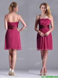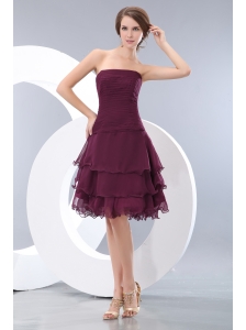 Cheap Burgundy A-line / Princess Strapless Ruch Bridesmaid Dress Mini-length Chiffon