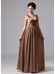 Natural Brown Tea Length Bridesmaid Dress with Sashes