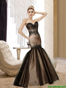 Perfect 2015 Mermaid Sweetheart Beading Tulle Chocolate Bridesmaid Dresses