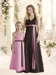 Modest Empire Halter Top Bridesmaid Dress with Ruching and Belt