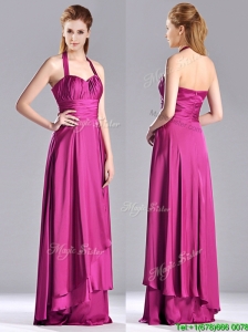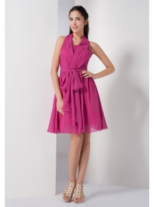 Fuchisa A-line Halter Bridesmaid Dress Chiffon Ruch Knee-length