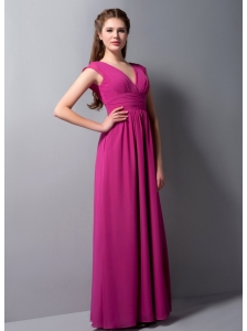 Fuchsia Mother Of The Bride Dress With Bowknot Short Sleeves Knee-length Chiffon