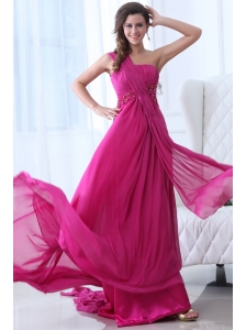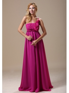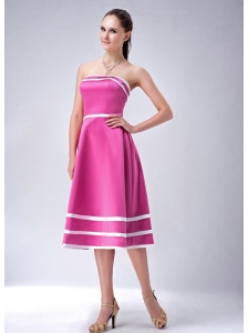 Hot Pink and White A-line / Princess Strapless Bridesmaid Dress Satin Tea-length