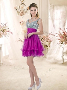 2016 Hot Sale Straps Short Bridesmaid Fuchsia Dresses with Sequins