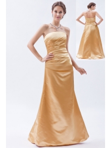 Champagne Column / Sheath Strapless Floor-length Satin Ruch Bridesmaid Dress