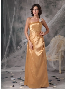 Elegant Bridesmaid Dress Gold Empire One Shoulder Taffeta Appliques Floor-length