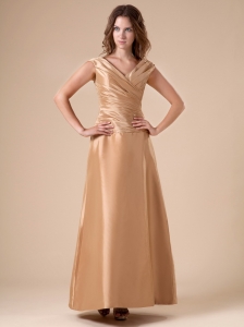 Ruch V-neck Ankle-length Gold 2013 Bridesmaid Dress