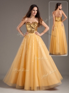 Luxurious Princess Sweetheart Sequins Long 2016 Bridesmaid Dresses in Gold