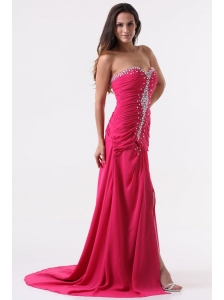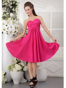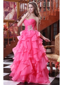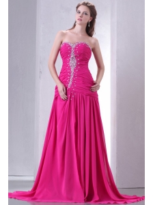 A-line Sweetheart Beading and Ruche Chiffon Prom Dress in Hot Pink