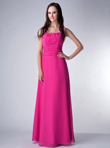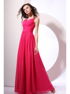 Empire Straps Hot Pink Beading and Ruching Chiffon Prom Dress