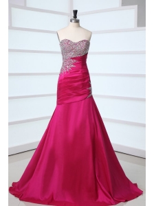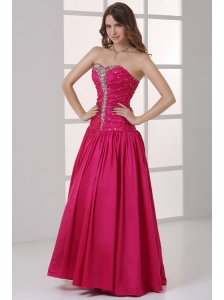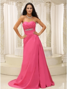Hot Pink Sweetheart A-line Beaded Decorate Prom Dress in Long