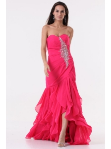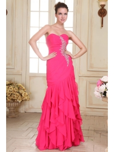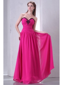 Sweetheart Floor-length Beaded Decorate Hot Pink Prom Dress in Chiffon