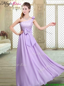 Custom Made A Line One Shoulder Lace and Bowknot Bridesmaid Dresses