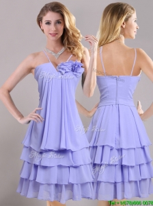 Hot Sale Ruffled Layers and Handcrafted Flower Bridesmaid Dress in Lavender