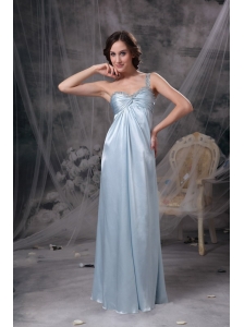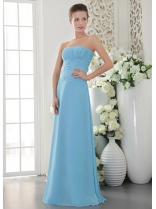 Light Blue Empire Strapless Floor-length Chiffon Ruch Bridesmaid Dress