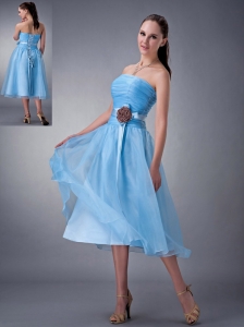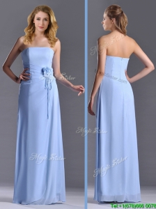 Cheap Strapless Hand Crafted Flower Long Bridesmaid Dress in Light Blue