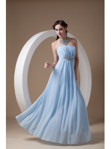 Empire Sweetheart Beading Light Blue Chiffon Prom Dress