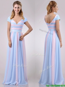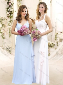 New Deep V Neckline Chiffon Bridesmaid Dress in Baby Pink and Light Blue
